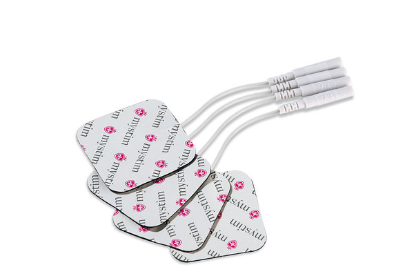 Die selbstklebenden Elektroden von Mystim sind mehrfach verwendbar und passen für alle Geräte mit einem 2 mm Stecker.