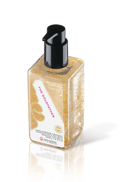 Das hinzugefügte Gold, sowie die enthaltenen Elektrolyte fördern die elektrische Leitfähigkeit, so dass The Goldfather ideal zum Spielen mit Elektrosexspielzeug geeignet ist.
