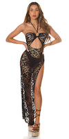 Wunderschönes schwarzes Spitzenkleid mit Neckholder und langem Beinschlitz.