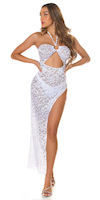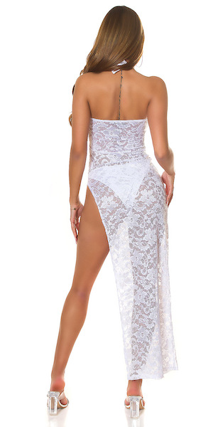 Wunderschönes weißes Spitzenkleid mit Neckholder und langem Beinschlitz.