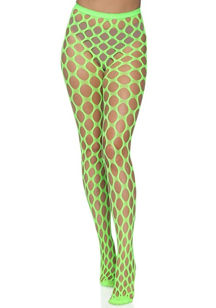Neon-grüne stretchy Stumpfhose aus grobem Netz. UV-aktiv.