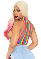 Hochgeschlossenes Crop-Top aus Regenbogen-Netz