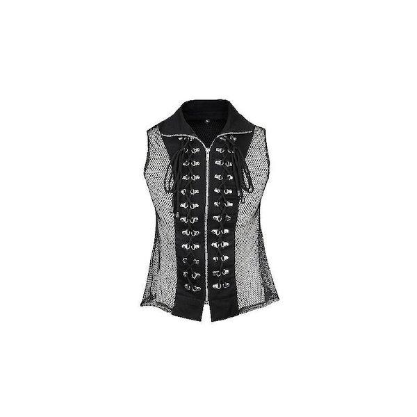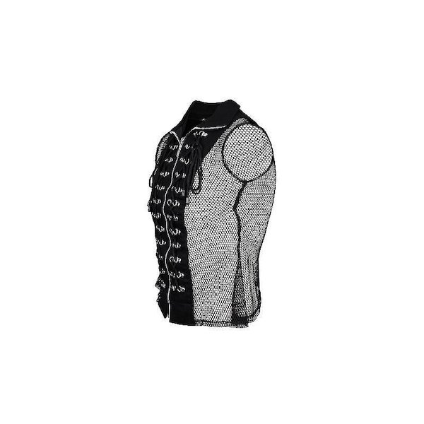 Wunderschöne Herrenweste aus Grobnetz und Denim-Stoff mit Reißverschluss und Schnürung vorn.