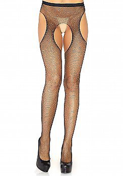Offene Netzstrumpfhose mit Glitzerelementen für Übergröße.