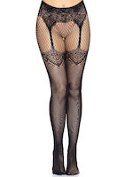 Netzstrumpfhose mit faux Strumpfhaltern und Schnürung auf der Rückseite.