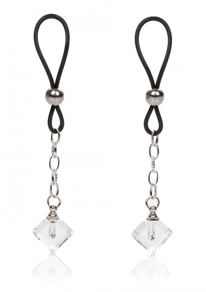 Verstellbare Schlaufen für die Brustwarzen mit blitzendem 'Kristall'-Schmuck. Nickelfrei.