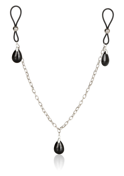 Elegante Nippelkette mit einstellbaren Silikonschlaufen mit drei schönen schwarzen Schmuckanhängern.