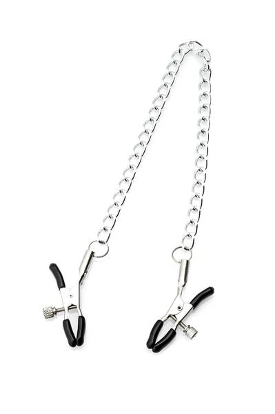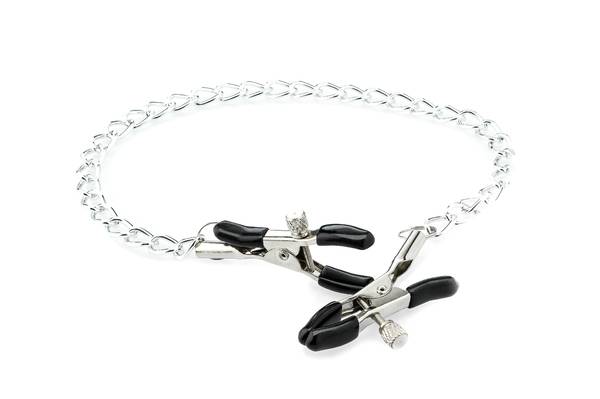 Die gummierten Nippelklammern können individuell im Millimeterbereich angepasst werden. Mit Kette.