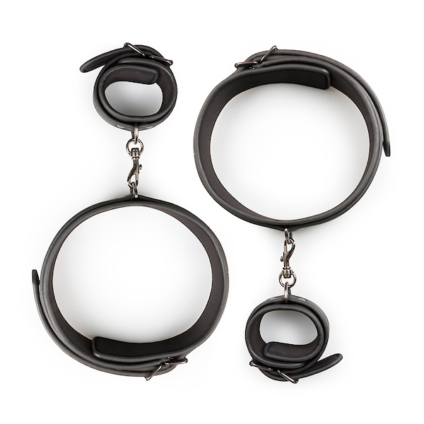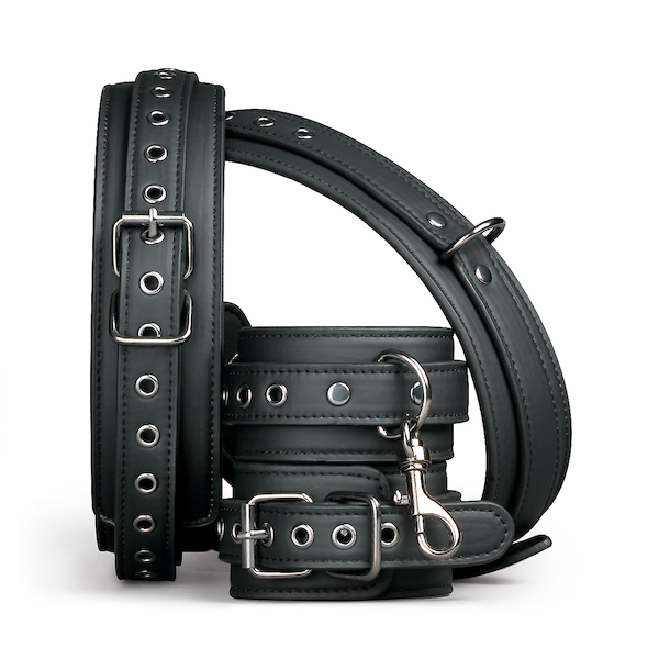 Mit diesem speziellen Set aus Oberschenkel- und Handgelenksmanschetten können Sie die Hände Ihrer/Ihres Devoten an seine oder ihre Oberschenkel fesseln. So haben Sie die komplette Kontrolle für eine BDSM-Erfahrung mit Genuss. Die Manschetten sind aus starkem und haltbarem Kunstleder und mit Schaumstoff gefüttert, um ein Aufkratzen der Haut zu verhindern. Die Handgelenksmanschetten sind über Klippverschlüsse mit den Oberschenkelmanschetten verbunden. Das heißt, dass Sie die Manschetten abnehmen und separat oder in Kombination mit anderen BDSM-Spielzeugen verwenden können. Alle vier Manschetten sind leicht verstellbar für eine perfekte Passform und eine komfortable Anwendung.