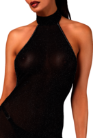 Design: Mit einem raffinierten Stehkragen und zarten Hakenverschlüssen vereint das Kleid Eleganz und Sinnlichkeit. Der gewagte offene Rücken zieht alle Blicke auf sich und wird durch ein glitzerndes Strassband in der Mitte akzentuiert, das für einen Hauch von Glamour sorgt. Tiefe Seitenschlitze strecken die Beine und sorgen für dramatische Bewegung, wodurch die markante Silhouette des Kleides betont wird.