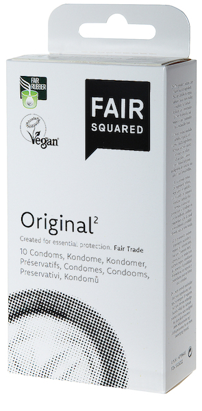 Glatte, zylindrische Kondome aus fair gehandelten Naturkautschuklatex. Feucht, transparent, mit Reservoir. Länge 200mm, Breite 54mm, Dicke 0,06mm. Verpackt zu 10 Stück in einer Box aus Recycling Karton. CO² neutralisiert.