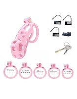 Die P-Cage-Kollektion von Rimba Toys umfasst verschiedene Arten von Peniskäfigen. Aus hochwertigem ABS-Material gefertigt, bieten diese Keuschheitskäfige einen bequemen Sitz und gewährleisten eine lange Haltbarkeit. Ein Keuschheitskäfig hindert den Träger daran, eine Erektion zu bekommen. Die Öffnung an der Vorderseite jedes P-Käfigs ermöglicht es dem Träger, zu urinieren, ohne den Käfig zu entfernen. Dieses Peniskäfig-Set enthält 5 Ringe in verschiedenen Größen (zwischen 43 und 55 mm). Außerdem enthält es 1 eingebautes Kupferschloss und 3 nummerierte Vorhängeschlösser aus Kunststoff. Die Plastikschlösser können nach einmaligem Gebrauch mit einer Schere abgeschnitten werden. Als Alternative zu den Kupfer-Einbauschlössern sind zwei Kunststoffschrauben enthalten, die möglicherweise nicht durch die Sicherheitskontrollen am Flughafen passen, während die Kunststoffschlösser flughafentauglich sind.