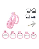 Die P-Cage-Kollektion von Rimba Toys umfasst verschiedene Arten von Peniskäfigen. Aus hochwertigem ABS-Material gefertigt, bieten diese Keuschheitskäfige einen bequemen Sitz und gewährleisten eine lange Haltbarkeit. Ein Keuschheitskäfig hindert den Träger daran, eine Erektion zu bekommen. Die Öffnung an der Vorderseite jedes P-Käfigs ermöglicht es dem Träger, zu urinieren, ohne den Käfig zu entfernen. Dieses Peniskäfig-Set enthält 5 Ringe in verschiedenen Größen (zwischen 43 und 55 mm). Außerdem enthält es 1 eingebautes Kupferschloss und 3 nummerierte Vorhängeschlösser aus Kunststoff. Die Plastikschlösser können nach einmaligem Gebrauch mit einer Schere abgeschnitten werden. Als Alternative zu den Kupfer-Einbauschlössern sind zwei Kunststoffschrauben enthalten, die möglicherweise nicht durch die Sicherheitskontrollen am Flughafen passen, während die Kunststoffschlösser flughafentauglich sind.