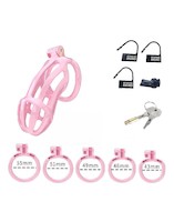 Die P-Cage-Kollektion von Rimba Toys umfasst verschiedene Arten von Peniskäfigen. Aus hochwertigem ABS-Material gefertigt, bieten diese Keuschheitskäfige einen bequemen Sitz und gewährleisten eine lange Haltbarkeit. Ein Keuschheitskäfig hindert den Träger daran, eine Erektion zu bekommen. Die Öffnung an der Vorderseite jedes P-Käfigs ermöglicht es dem Träger, zu urinieren, ohne den Käfig zu entfernen. Dieses Peniskäfig-Set enthält 5 Ringe in verschiedenen Größen (zwischen 43 und 55 mm). Außerdem enthält es 1 eingebautes Kupferschloss und 3 nummerierte Vorhängeschlösser aus Kunststoff. Die Plastikschlösser können nach einmaligem Gebrauch mit einer Schere abgeschnitten werden. Als Alternative zu den Kupfer-Einbauschlössern sind zwei Kunststoffschrauben enthalten, die möglicherweise nicht durch die Sicherheitskontrollen am Flughafen passen, während die Kunststoffschlösser flughafentauglich sind.