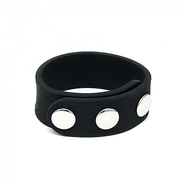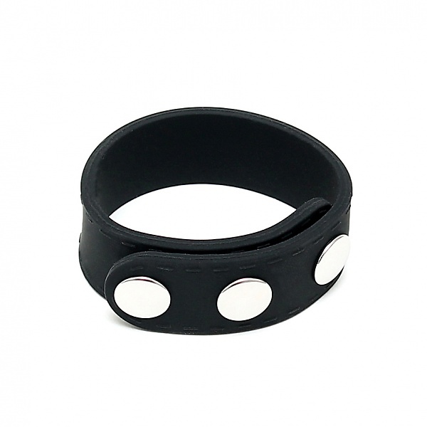 Dieses Penisband besteht zu 100% aus Silikon und ist mittels dreier Druckknöpfe verstellbar. Durchmesser ca.: 6,5 cm, 5,7 cm und 5 cm.
