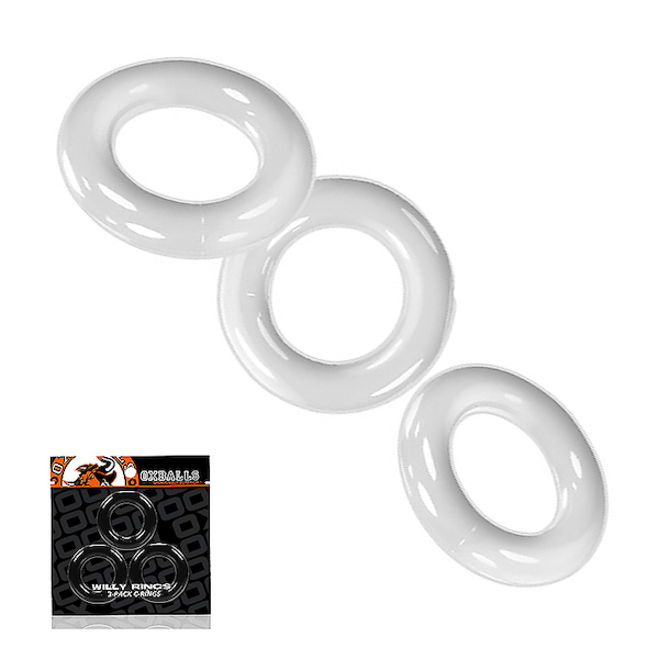 WILLY RING 3er-Pack superelastischer transparenter Penisringe, einzeln, gestapelt oder geschichtet verwendbar.