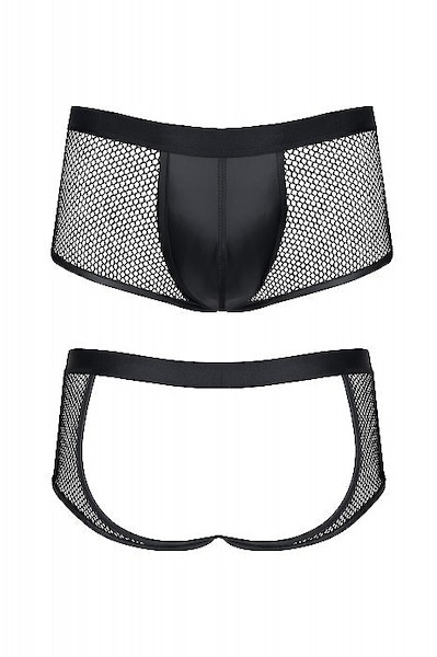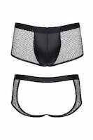 Shorts mit offener Rückseite aus flexiblem Mesh und Mattlook / angenehmes breites Gummiband um den Umfang / Zugangstasche auf der Vorderseite / offener Rücken / verstärkende Nähte