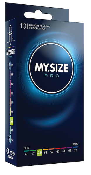 10 Kondome aus Naturkautschuklatex, zylindrisch geformt, transparent, glatt, mit Gleitmittel und Reservoir Nennbreite: 49 mm Besonders allergenarm durch die Verwendung von hochgradig reinem VYTEX - Latex. Dieses enthält über 90% weniger Latexproteine und ist praktisch frei von allergieauslösenden Proteinen und Verunreinigungen. Starke Reduzierung des sonst üblichen Kondomgeruchs durch die Verwendung von VYTEX-Latex. MY.SIZE PRO Kondome sind mit einer minimalen Wandstärke von 0,05 bis 0,06 mm besonders dünn und damit besonders gefühlsecht. Bei der Produktion und Herstellung von MY.SIZE PRO werden nur Produkte verwendet, die frei sind von tierischen Inhaltsstoffe und nicht in Tierversuchen getestet wurden.