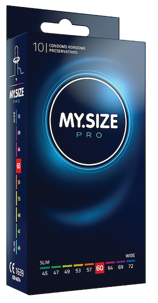 10 Kondome aus Naturkautschuklatex, zylindrisch geformt, transparent, glatt, mit Gleitmittel und Reservoir Nennbreite: 60 mm Besonders allergenarm durch die Verwendung von hochgradig reinem VYTEX - Latex. Dieses enthält über 90% weniger Latexproteine und ist praktisch frei von allergieauslösenden Proteinen und Verunreinigungen. Starke Reduzierung des sonst üblichen Kondomgeruchs durch die Verwendung von VYTEX-Latex. MY.SIZE PRO Kondome sind mit einer minimalen Wandstärke von 0,05 bis 0,06 mm besonders dünn und damit besonders gefühlsecht. Bei der Produktion und Herstellung von MY.SIZE PRO werden nur Produkte verwendet, die frei sind von tierischen Inhaltsstoffe und nicht in Tierversuchen getestet wurden.