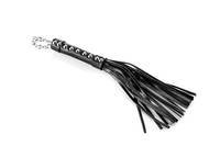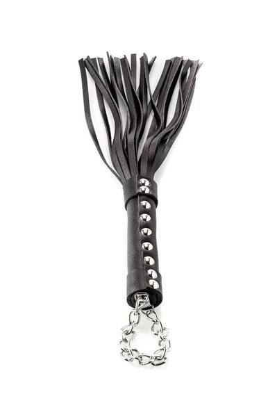 Peitsche aus schwarzem Kunstleder mit schwarzem Griff für optimalen Halt bei Züchtigungen jeder Art.