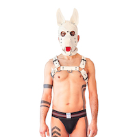Welpenpfote auf der Rückseite des Geschirrs eingenäht