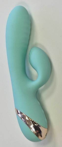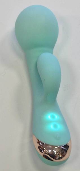 Dieser wunderschöne Vibrator aus samtig-weichem Silikon hat nicht nur zwei kraftvolle Motoren im Vaginalteil und im Klitoristeil, sondern auch eine Aufpumpfunktion an der Spitze.