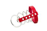 Sehr dekorativer PU Lederpenisring mit Metallringen, die Ihrem steifen Schwanz den gewünschten Halt geben. Dank Druckknöpfen ist der Lederring größenverstellbar.