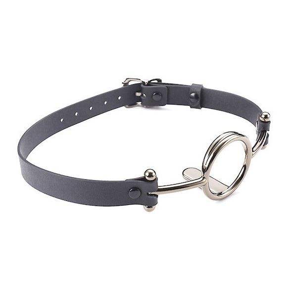 Hochwertiger O-Ring-Knebel aus hochwertigem Leder mit Zungenhalter, um den Mund Ihres Unterwürfigen weit offen zu halten.