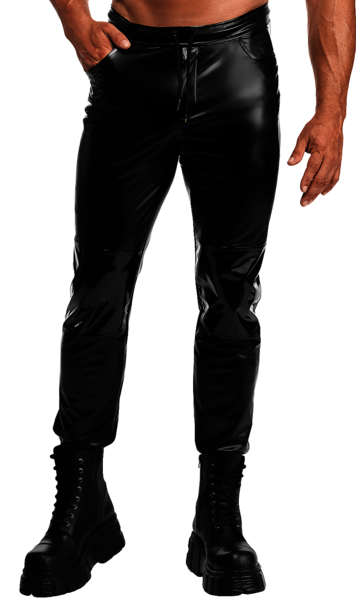 Aus dehnbarem Powerwetlook mit glatter Oberfläche und PVC-Knieeinsätzen. Mit zwei Seitentaschen, zwei Gesäßtaschen und verstellbarem Bund mit Kordelzug. Enganliegend, flexibel und angenehm weich auf der Haut.
