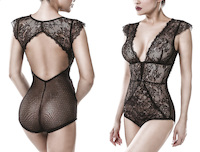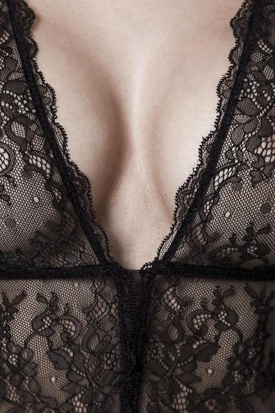 erotischer Body von Grey Velvet aus transparenter Spitze mit floralem Muster tiefer V-Ausschnitt mit angeschnittenen Ärmelchen