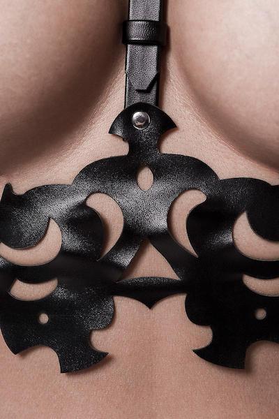 Erotikset von Grey Velvet Harness mit Halsband Spitze aus geschnittenem Kunstleder Strapsgürtel aus weichen, elastischen Bändern inklusive passendem String Bh nicht enthalten