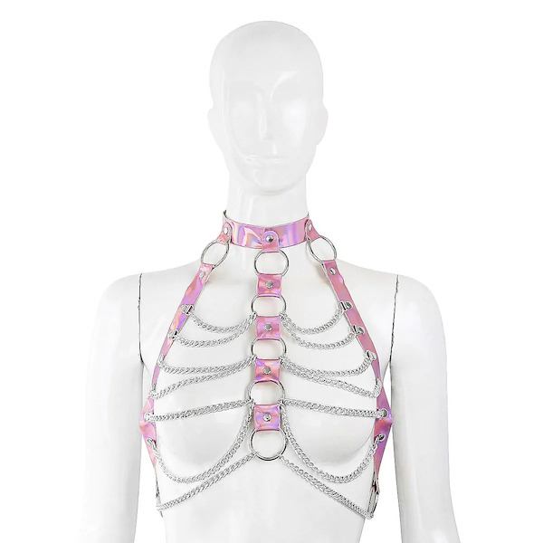 Heißes Kettentop aus rosa schimmerndem Polyurethan, individuell einstellbar.