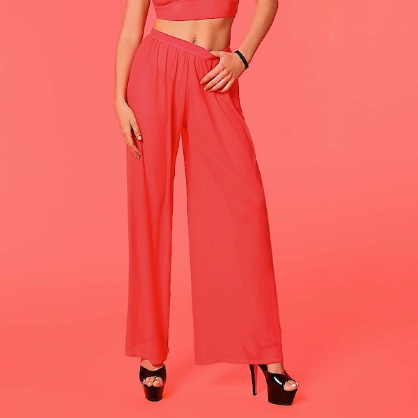 Roter transparenter Hosenrock mit interessanter Rückansicht.
