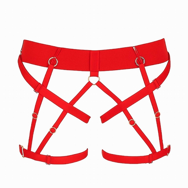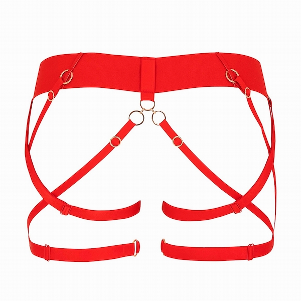 Scharfer roter Harness für Po und Beine aus Gummistraps - verstellbar.