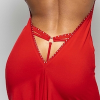 Roter Stoff-String mit feinen Strassbesatz.