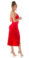 Wunderschönes, rotes, leicht gerafftes Samtlook Abendkleid mit Strassträgern.