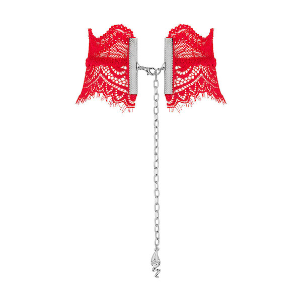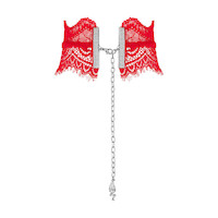 Erotisches Halsband gefertigt aus roter Spitze Das Halsband wird auf der Rückseite durch eine Metallkette geschlossen
