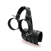 Raffiniertes Fesselsystem aus Kunstleder, um hände und Arme hinter dem Rücken zu fixieren.
