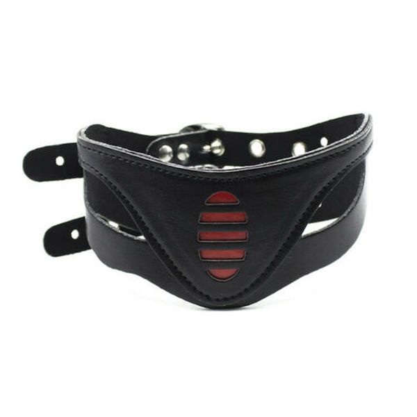 Aufregendes Zierhalsband aus veganem Leder mit roter Applikation vorne. Passend für Halsumfänge zwischen ca. 31 - 45 cm.