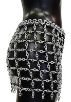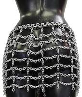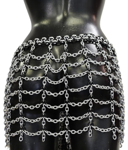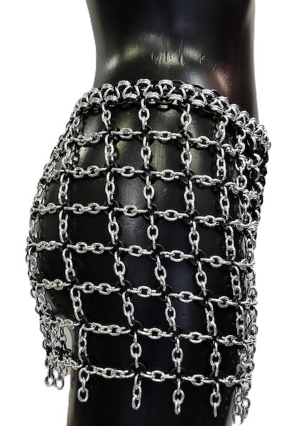 Hüftrock aus schwarzen und silbernen Metallringen und flexiblen Latexringen. Hüftumfang: ca. 115 – 120cm Echte Handarbeit.