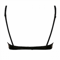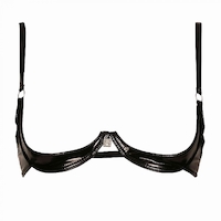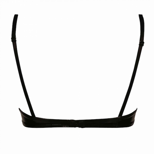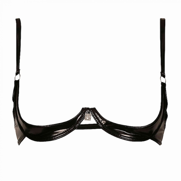 Elegante gepolsterte Büstenhebe aus schwarzem Lack mit Strassschloss als Schmuck.