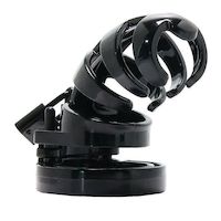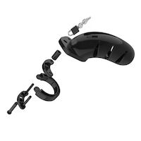 Schwarz und aus Stahl! Diese Keuschheitskralle hat es in sich! Mit Vorhängeschloss.