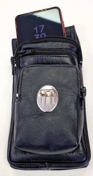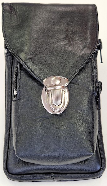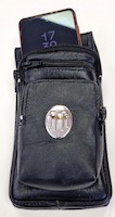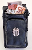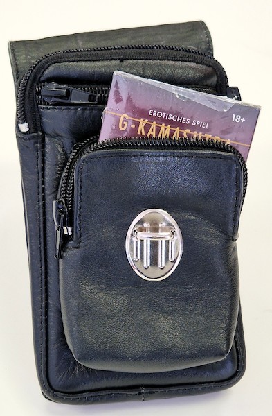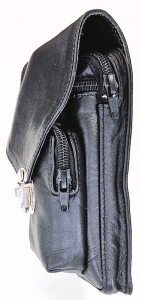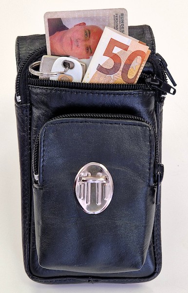 Elegante Gürteltasche aus hochwertigem Rindsnappaleder mit drei Fächern, die alle mit einem Reißverschluss ausgestattet und innen gefüttert sind. In diese passen z.B. Smartphone (max. 165 x 80 mm), Schlüssel, Karten, Bargeld und Standard-Zigarettenschachtel. Die hintere Schlaufe passt auf alle Gürtel bis zu einer Breite von 5 cm.