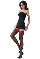 schwarze halterlose Strümpfe mit einem breiten roten Spitzenrand Größe: 1/2, 3/4, 5 Farbe: schwarz/rot Stärke: 17DEN