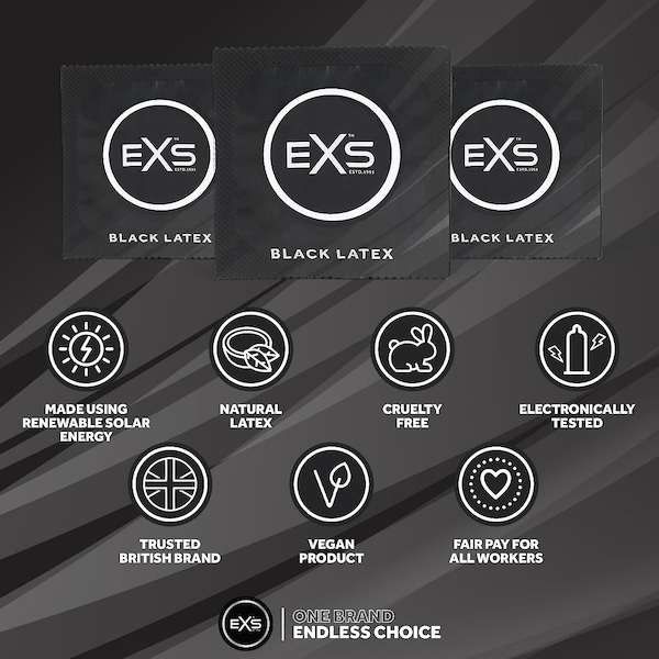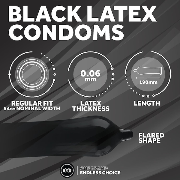 Entfesseln Sie Ihre Wünsche mit dem EXS Black Latex, dem gewagtesten Kondom der EXS-Reihe. Mit seinem auffälligen schwarzen Finish bringt es ein Element der Fantasie und Verführung ins Schlafzimmer und ist perfekt für Paare, die ihrer Intimität eine würzige Note verleihen möchten. Das EXS Black Latex wurde als Hommage an Stil und Selbstbewusstsein auf den Markt gebracht und ist für diejenigen gedacht, die aus dem Gewöhnlichen ausbrechen möchten. Seine anatomische Form und die nominale Breite von 54 mm sorgen für eine natürliche, sichere und bequeme Passform, während der tiefschwarze Latex einen einzigartigen optischen Akzent setzt, der Leidenschaft und Spielfreude steigert. Ob aufgrund seiner verführerischen Ästhetik oder als Ergänzung zu einem dunkleren Hautton – das EXS Black Latex verbindet zuverlässigen Schutz mit einem gewagten neuen Look, mit dem Sie sich in der Hitze des Augenblicks ausdrücken können. Produktspezifikationen: Nennweite: 54 mm (reguläre Größe) Anatomische Form für natürlichen Komfort Schwarzes Latex für einen auffälligen, verführerischen Look Perfekt für Fantasiespiele oder dunklere Hauttöne Erhältlich in 12er-, 48er- und 100er-Packungen Der EXS Black Latex ist mehr als nur Schutz – er ist ein Erlebnis von Stil, Fantasie und Selbstvertrauen in jedem Moment.
