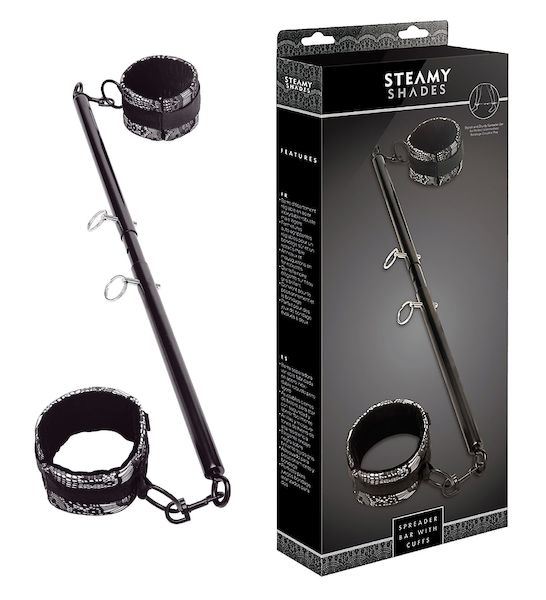 Beherrschen Sie Ihren widerspenstigen Partner mit der STEAMY SHADES Spreizstange, in dem Sie die Einhaltung bestimmter Körperhaltungen erzwingen, so dass Sie die intimsten Körperstellen Ihres Partners kitzeln, beglücken und reizen können. Die aus robustem und leichtem Edelstahl gefertigte Spreizstange ist verstellbar und bietet verschiedene Fesselmöglichkeiten - im Stehen oder Liegen, positionieren Sie Ihren Partner wie es Ihnen beliebt. Die eleganten Manschetten mit schwarzer Spitze auf glänzendem grauem Stoff haben Klettverschlüsse die Ihren Partner sicher bändigen und können trotzdem leicht entfernt werden. Die verstellbaren Manschetten sind vollständig abnehmbar, sodass Sie sie separat verwenden können und bieten so verschiedene Möglichkeiten für sichere Fesselspiele. Mit gespreizten Beinen kann sich Ihr Partner sinnlichen Momenten von Macht und Vertrauen hingeben. Lassen Sie Ihrer Phantasie freien Lauf mit diesem unverzichtbaren Accessoire für Paare. Material: Spreizstange (100% nickelfreies Edelstahl); Ringe & Karabiner (100% nickelfreies Eisen); Manschetten (100% Polyester); Riemen (100% Polypropylen)