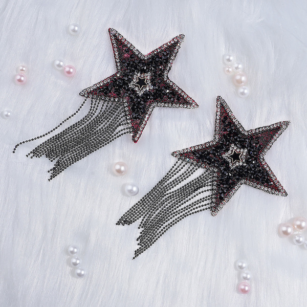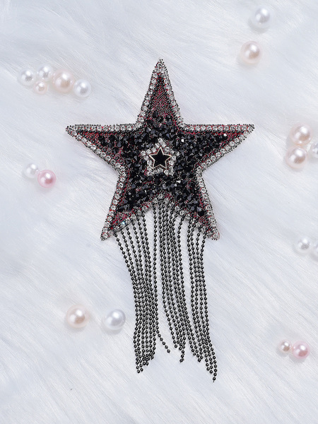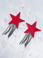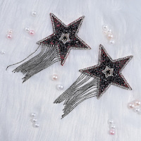 Sternförmige schwarze Nipplecover mit silberner Umrandung und feinen Perlenkettchen mit schimmernden Steinen besetzt. Selbstklebend.
