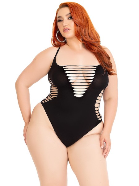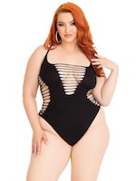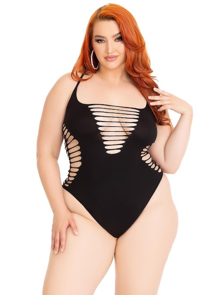 Offener, nahtloser String-Bodysuit mit Racerback in schwarz.