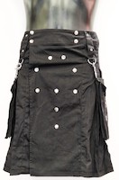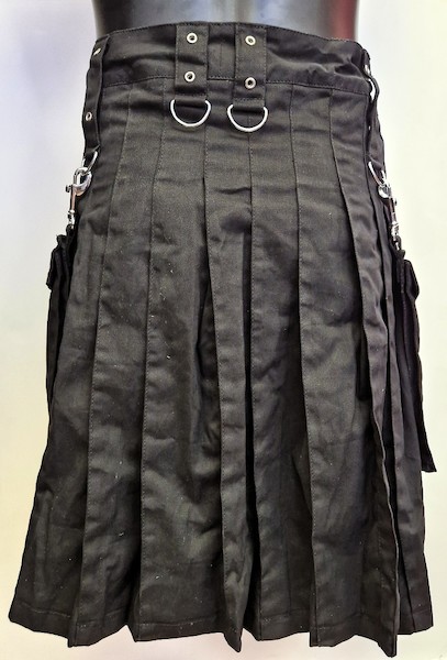 Schwarzer Demin Herren Kilt mit Taschen an den Seiten