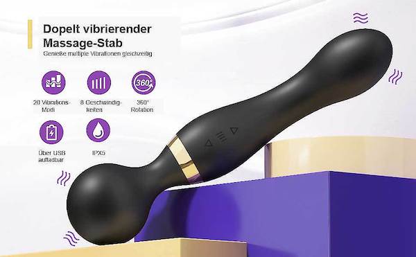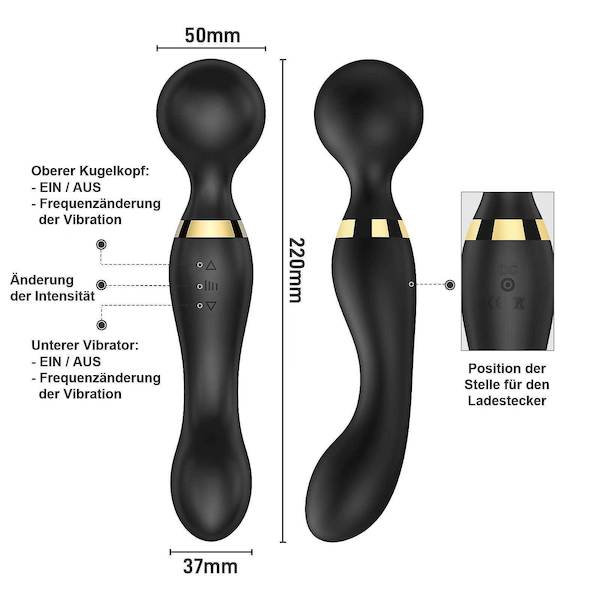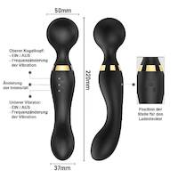 Wunderschöner Wand-Vibrator mit doppelter Funktion aus samtweichem Silikon. Der flexible runde Kopf vibriert in 8 verschiedenen Geschwindigkeiten und 20 unterschiedlichen Vibrationsmustern. Gleiches gilt für den geschwungenen Griff, der zum Vaginalvibrator wird. Beide Motoren können unabhängig voneinander angesteuert werden.
